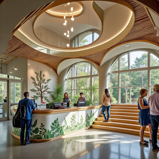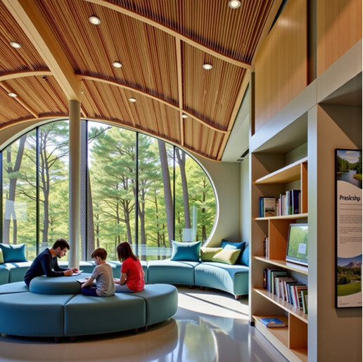 Mairen Manning, a Florida State University student, has taken first place in Material Bank’s 2025 Student Design Competition — highlighting Field Elm from Wilsonart Woodgrains® on the reception desk of her winning design. For her project, Acadia Visitor Center, Mairen imagined a retail space at the edge of Acadia National Park that blends naturally into its surroundings.