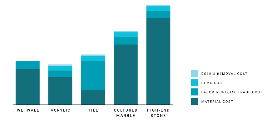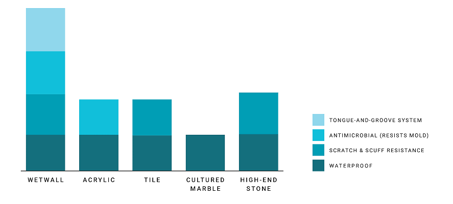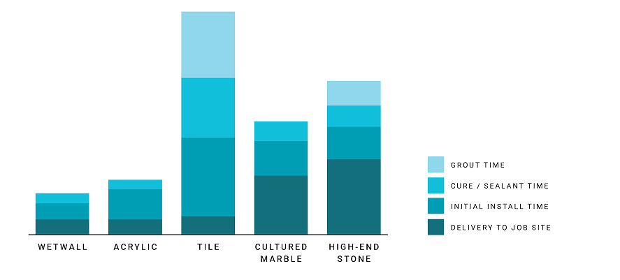 While certain material costs may be comparable, the ease of installation and longevity of Wetwall make it consistently more affordable than tile.
